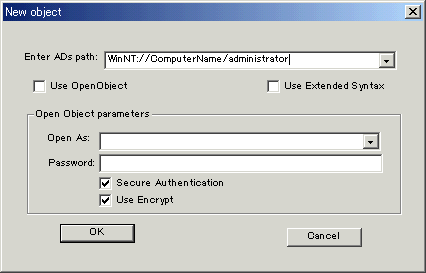 図2ここで、例えば [Enter ADs Path] に "WinNT://ComputerName/administrator" と入力します。