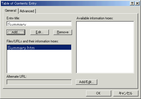 | HTML Help table of contents[.hhc] | 目次ファイルを追加します |