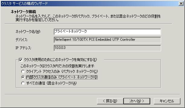 ここの仮想サーバー名は、クラスタの管理用の仮想サーバー名になります。