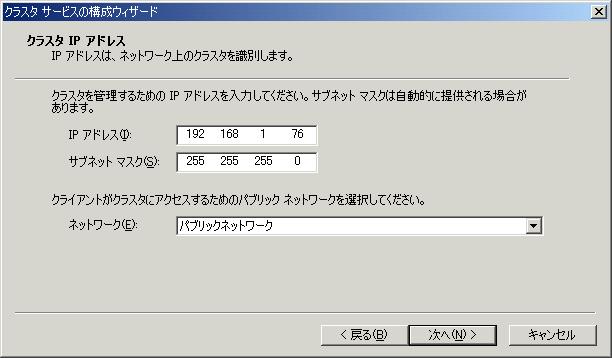| 仮想サーバー名 / IP / Subnet | W2KMSCS / 192.168.1.76 / 255.255.255.0 |