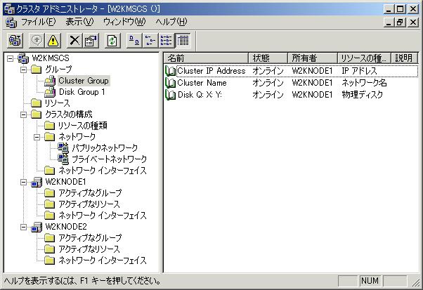 クラスタのインストールが終わったら、クラスタアドミニストレータを起動して、今まで設定した内容がどのように反映しているか(どこに格納されているか)を確認してください。