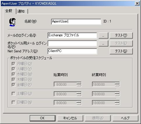 | オペレータ | 警告やジョブで使用するメールアカウントや、Net Send アドレス、ポケベル用のアカウントを指定します。 |
