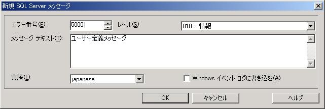警告の設定は、sysalerts テーブルに格納され、sp_add_alert ストアドプロシージャを使用することにより作成も可能です。 エラー番号を予め調査する必要があるのが難点です。 また、ユーザー定義エラーを作成することも可能です。作成の方法は以下のとおりです。